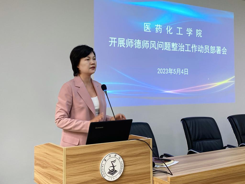 徐元红强调,通过开展师德师风问题专项整治,增强广大教师依法从教意识,严格规范从教行为,进一步提升教师队伍建设水平,激励广大教师成为“四有”“六模范”好老师。并就做好医化学院师德师风问题整治工作提出三点要求,一是要加强领导,提高政治站位,要把师德师风专项整治工作作为一项事关学院发展的最重要的工作,切实做到统一部署,集中整治;二是要落实整改,务求实效,要做到整改定目标,推进有措施,落实有责任,完成有时限,每位教师都是自己师德师风形象的第一责任人;三是要强化警示,正面引导,师德师风无小事,学院对违反师德师风问题“零容忍”,同时要发挥学院“思政名师”、“最美教师”的榜样力量,让学院的优良师德师风传承发扬。